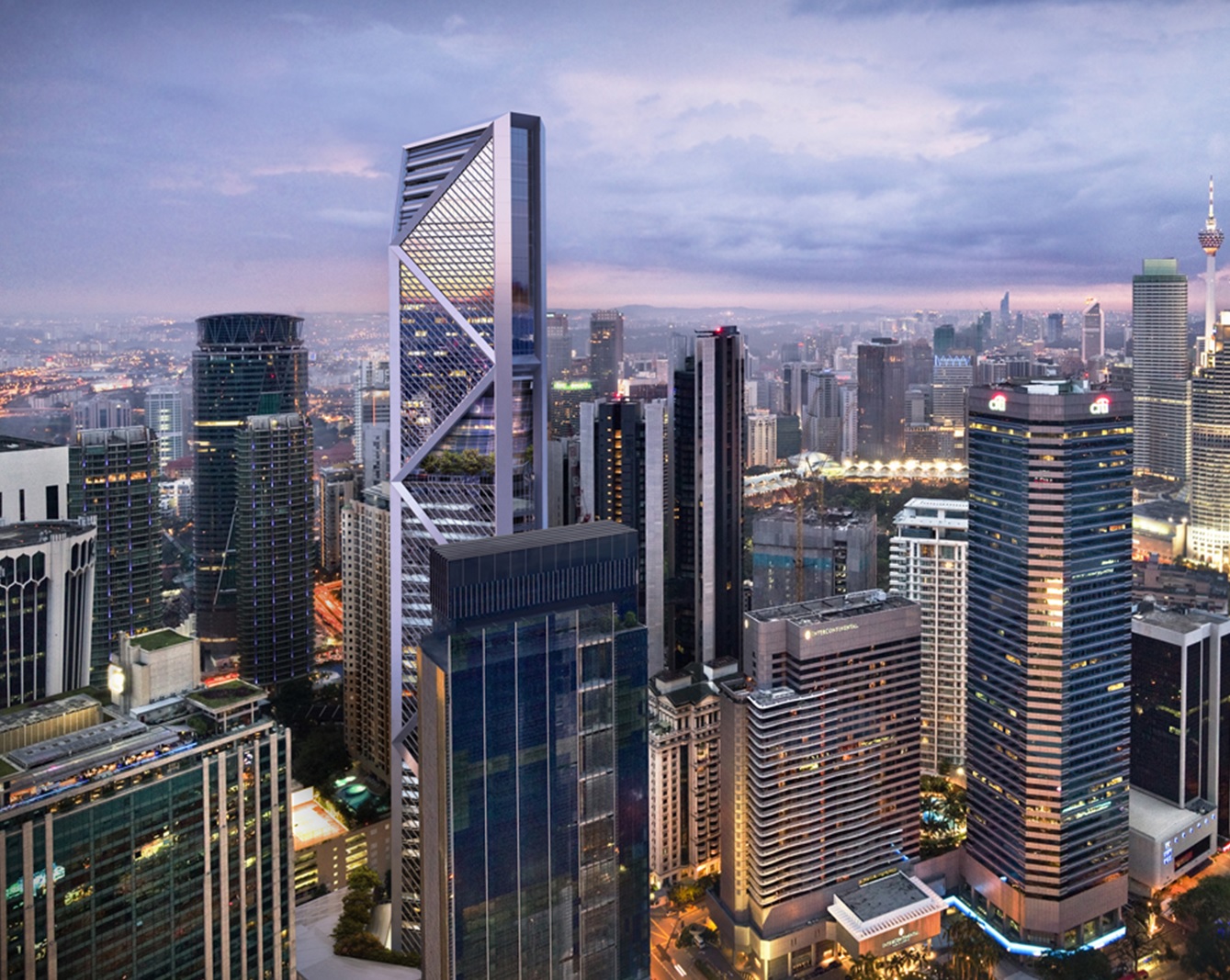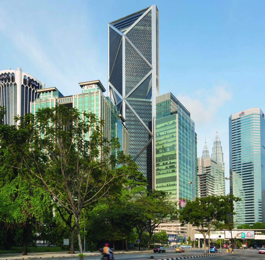 Ilham Tower, also known as Ilham Baru Tower and IB Tower is a 58-storey, 274-metre-tall skyscraper in Kuala Lumpur, Malaysia. It is Malaysia’s seventh tallest building. The Ilham Tower is the result of an extensive and careful form-finding process. Its diagonal exon-skeleton, comprising triangulated concrete frames and external trusses, is offset against the elegant glazing within the building’s structural armor.